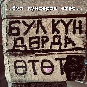 - Деревянная табличка с рукописной надписью кириллицей: «бул күндәрдә өтөт».
