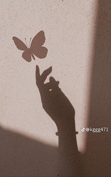 - Минималистичная теневая композиция: силуэт руки и бабочки на светлом фоне (указан авторский ник @kggg471).