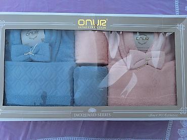 Набор банных халатов из серии Jacquard Home Collection,Турция Стамбул включающий два халата банные 2 полотенца большие и маленькие также принадлежности. Один комплект выполнен в голубом цвете, другой — в розовом. Оба халата имеют классический крой, выполнены из мягкого, приятного на ощупь материала. Набор идеально подходит для домашнего использования после душа или ванны, а также может стать прекрасным подарком.Цену можно обговорить