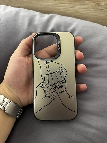 3) Зеркально-золотистый чехол с графичной линией “семейные руки”. Защитный черный ободок на камере с надписью “SO COOL”.