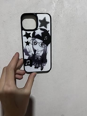 - Бело‑чёрный чехол с аниме‑героиней и звёздами.