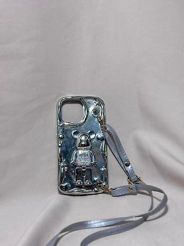 - Хромированный чехол с 3D‑медвежонком, звездочками и лунным декором; в комплекте длинный съемный ремешок на карабинах для ношения через плечо или на шее (регулируемая длина, кнопочные фиксаторы).