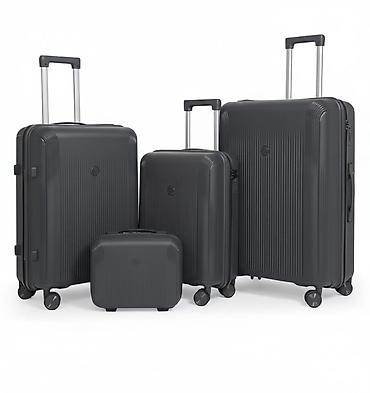 - Комплектация: 3 чемодана разного размера + кейс/сумка для ручной клади и аксессуаров.
