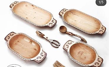 Набор деревянной посуды в национальном стиле. этно идиш ижарага берилет.