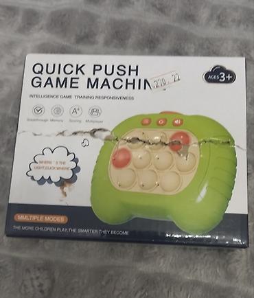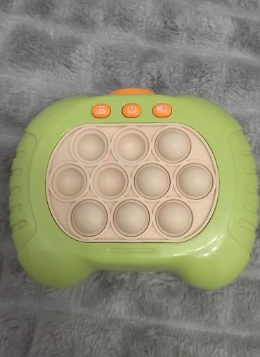 - светло-зеленая электронная поп-ит-приставка: панель с пузырьками и кнопками управления (иконки меню, питания и звука).
