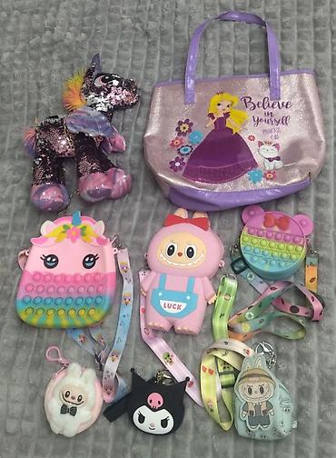 - фигурная розовая сумочка-персонаж с надписью “LUCK”.