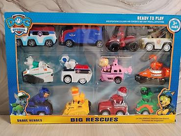 - Комплектация: 12 мини-транспортов с фигурками щенков и техниками: