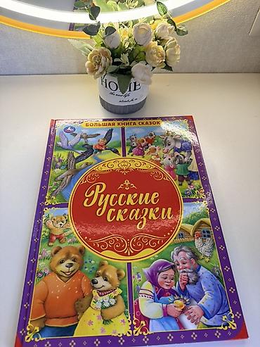 - «Русские сказки» — большая книга сказок в твёрдом переплёте. Яркие рисунки, подборка известных народных историй для совместного чтения.