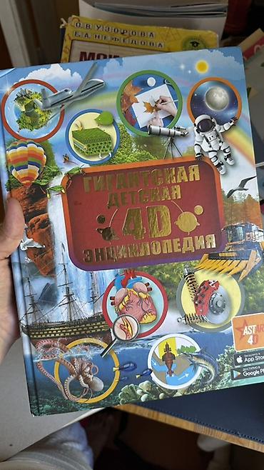 - Гигантская детская 4D энциклопедия. Иллюстрированное издание в твердой обложке с интерактивными 4D‑элементами. На обложке указана поддержка приложений App Store и Google Play (ASTAR 4D). Темы: техника, космос, природа, анатомия, исследования океана и др. - 1500 сом