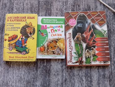 Набор детских книг (3 штуки). 1.) Английский язык для девочек и мальчиков (б\у среднее состояние )300 сом. 2.) Мышонок Пик и Сказки (идеальное состояние) 300 сом. 3.) Энциклопедия о обезьян (идеальное состояние) 400 сом