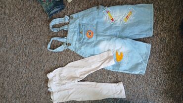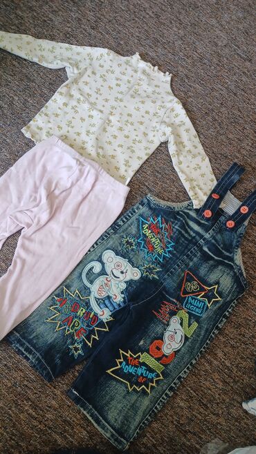 Детский комплект одежды 2 пакет вещей для 1- 3 лет срочно за 250 с Состав: - Джинсовый полукомбинезон тёмно-синего цвета с яркими нашивками и вышивкой (медвежата, надписи Adventure, 1982 и др.),...