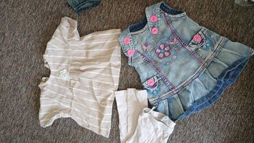 Размеры ориентировочно на малыша/девочку дошкольного возраста (см. фото для визуальной оценки посадки и длины). Набор универсален на лето и межсезонье: есть тёплая толстовка и лёгкие вещи, сочетания для прогулок и праздников.