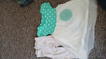 Детские вещи набором (размеры примерно на 2–4 года, ориентируйтесь по фото): 1) Платье в клетку с объемным белым воротником-пелериной и длинными рукавами на резинке. Застежка на пуговицы спереди, ...
