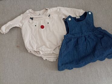 Набор детской одежды для девочки (0–12 мес., по фото): - Красное платье-боди с длинным рукавом: воланы спереди, декоративный бант, нижняя часть на кнопках для удобной смены подгузника, застёжка на...