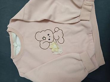 3) Свитшот пудрово-розового цвета с вышивкой медвежонка спереди и декором в виде объёмного цветка. Эластичные манжеты и пояс, круглая горловина с внутренней подкладочной лентой.