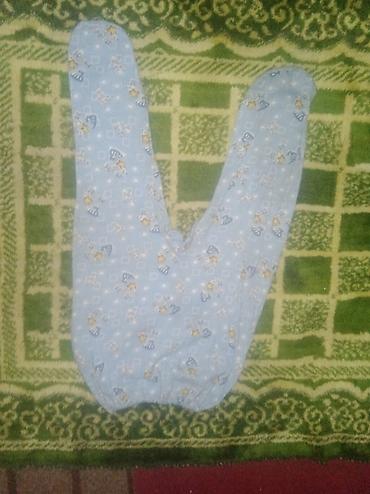 2) Ползунки с закрытыми ножками, голубые с мелким рисунком (звёздочки, колпачки и др.). Пояс на резинке, мягкая дышащая ткань.