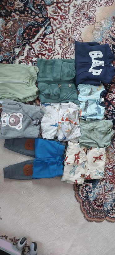 ПАКЕТ одежды для мальчика (с 6 месяцев до1,5 года примерно В набор входят: - Толстовки/свитшоты и лонгсливы с принтами (голубой с мишкой, желтый с животными, полосатый бирюзовый и др.). - Брюки и ...