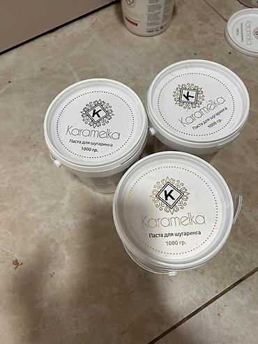 - Сахарная паста для шугаринга Karamelka — ведерки по 1000 г. На крышке: “Паста для шугаринга, 1000 гр.” Подходит для ручной техники и шпателя (по маркировке на банке видны варианты “средняя/универсальная” и пр.).