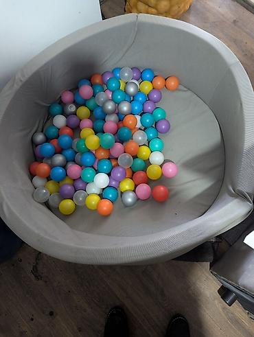 1) Детский сухой бассейн из мягких бортов + комплект разноцветных пластиковых шариков.