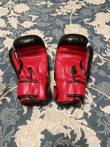 - Перчатки боксерские детские/малого размера, чёрно‑красные, с манжетой на липучке и мягким заполнителем.