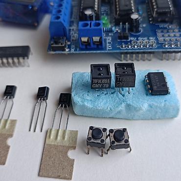 - SN74HC595N (сдвиговый регистр, 2 шт. на шильде и ещё 1 отдельная).