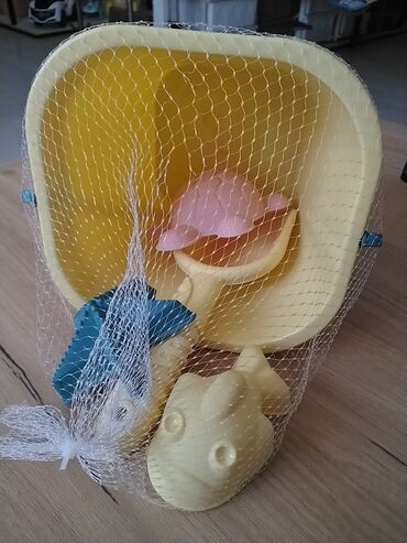 Набор для игры в песочнице, включающий в себя ведерко песочного цвета с удобной зеленой ручкой, лопатку, а также формочки в виде морской звезды, рыбки и черепахи. Формочки выполнены в желтом, розовом и зеленом цветах соответственно. Идеальный выбор для развлечений на пляже или в песочнице, способствует развитию моторики и воображения.