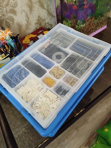 Набор деталей для конструирования (типа Technic) в пластиковых органайзерах.