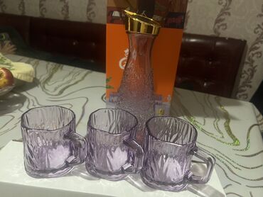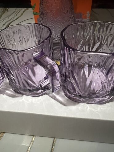 Стеклянные кувшины с крышками. Цена: по 500 сом каждый - Материал: тонкое жаропрочное стекло с дымчатым оттенком. - Форма: расширяющееся к низу основание для устойчивости,...