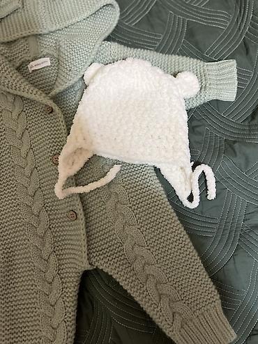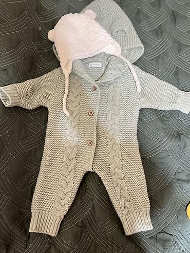 Вязаный детский комплект от рождения до 3-4х месяцев можно носить 2-в-1 без этикетки но новая Подходит для выписки теплая. Классное качество Состав набора: - комбинезон на пуговицах из плотной...