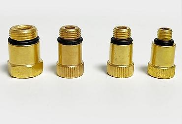 - Набор переходников под свечные резьбы распространённых размеров (латунь с уплотнительными кольцами) — для подключения через резьбу.