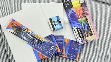 - всё необходимое в одном наборе: краски, основы, кисти и медиум;
