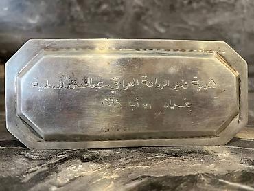 Перевод: «Подарок министра сельского хозяйства Ирака Абд аль-Хусейна аль-Атии. Багдад, 1969 г.»