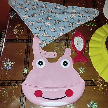 - Силиконовый нагрудник с кармашком и смешной мордочкой. Регулируемая застёжка, легко моется, собирает крошки и проливы.