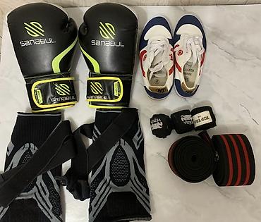 Подходит для бокса, кикбоксинга, ММА, тренировок в зале и ОФП. Комплект покрывает защиту рук и коленей, обувь для работы в зале, а также бинты/ленты для фиксации и поддержки.