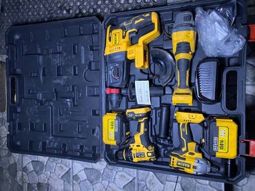 Набор 4в1 Набор аккумуляторного инструмента KASON в кейсе. В комплекте: - гайковерт - шуруповерт с переключателем режимов - болгарка - перфоратор - 4 батарейки - 2 зарядки Питание: аккумулятор...