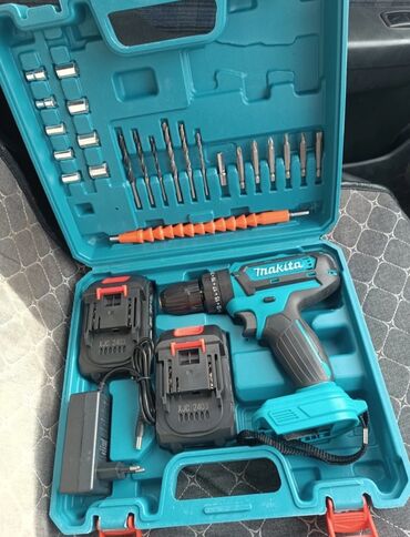 Комплектация: шуруповёрт, 2 аккумулятора, зарядное, набор бит и свёрл, кейс.