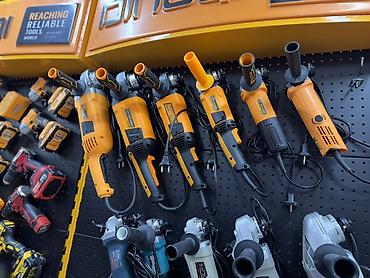 - Угловые шлифмашины (болгарки): несколько размеров корпуса и кожухов, боковые рукоятки, регулировка оборотов на части моделей.