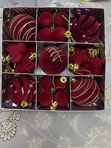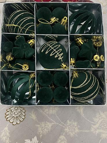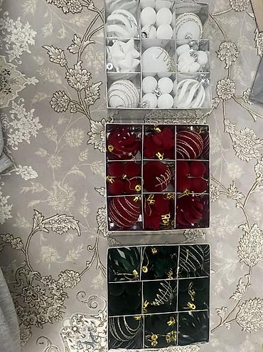 Наборы новогодних ёлочных украшений в коробках.