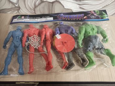 - В комплекте 5 героев: Халк, Танос, Человек‑паук, Железный человек, Капитан Америка.