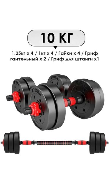 Комплект разборных гантелей 10 кг с возможностью сборки в штангу