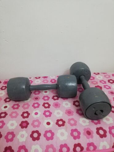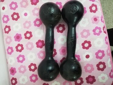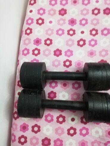 - Пара цилиндрических литых гантелей (чугун, цельнолитые).