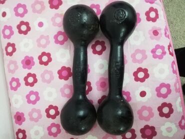 - Пара гантелей с утолщёнными цилиндрическими блинами (чугун, цельнолитые).