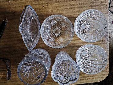 - 2 салатника круглые среднего размера с богатой огранкой «сеткой», звёздами и цветочными медальонами на дне