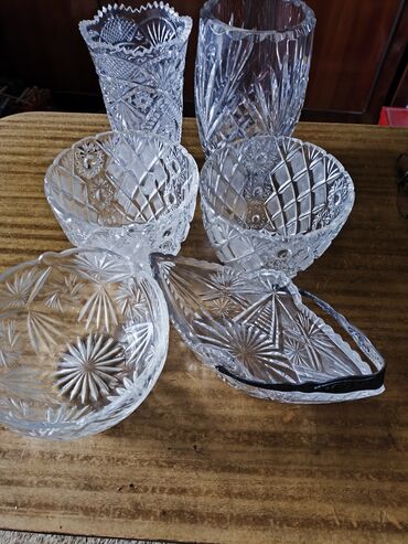 Размеры: ваз — высота 200 и 220 мм. диаметр 120 мм; Салатники средние— высота 120 мм, диаметр 155 мм; Салатник — высота 90 мм, диаметр 170 мм; Конфетница ладья 230х140х100мм.