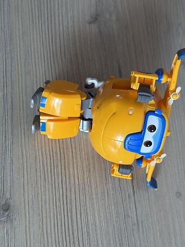 - Желтый самолет‑робот с большими глазами. Крылья, винт, шасси; превращается в фигурку с руками и ногами. Дони 200