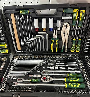 - Полнокомплектные наборы для слесарных и автомеханических работ: торцевые головки (короткие и удлинённые), биты, вставки Torx/Hex/Ph/Pz/Sl, свечные головки, карданчики, удлинители, воротки, трещотки 1/4", 3/8" и 1/2".