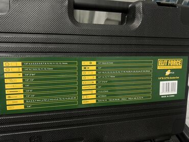 Маркировка на кейсе: ELIT FORCE, 1/4" & 1/2" Dr. Socket Set, 94 PCS. Made in China. Код на штрих-коде: .