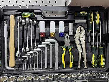 Набор ручного и слесарно-автомобильного инструмента в прочном пластиковом кейсе.