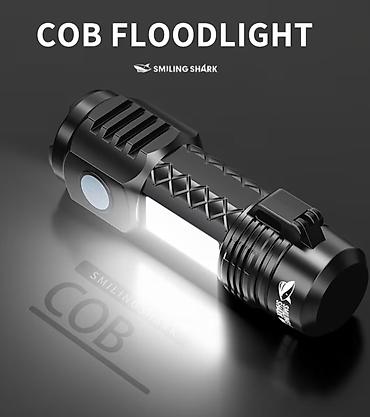 - Компактный корпус с боковой COB-панелью — яркий равномерный заливающий свет для работы, кемпинга и авто.