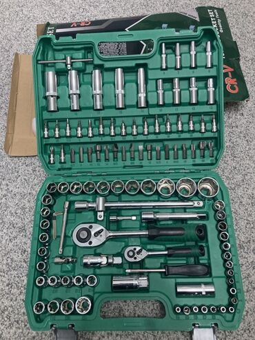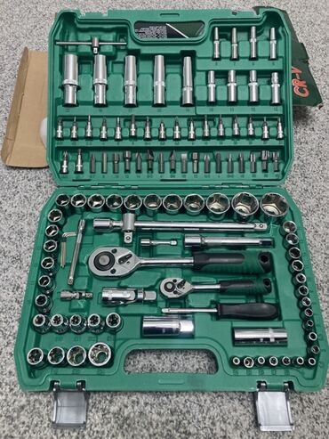Набор ручного инструмента в чемодане Комплектация: - Трещотки 3 шт. с быстрым сбросом и реверсом (1/4", 3/8", 1/2") - Головки торцевые: широкий ряд стандартных и удлинённых, включая крупные под 1/...